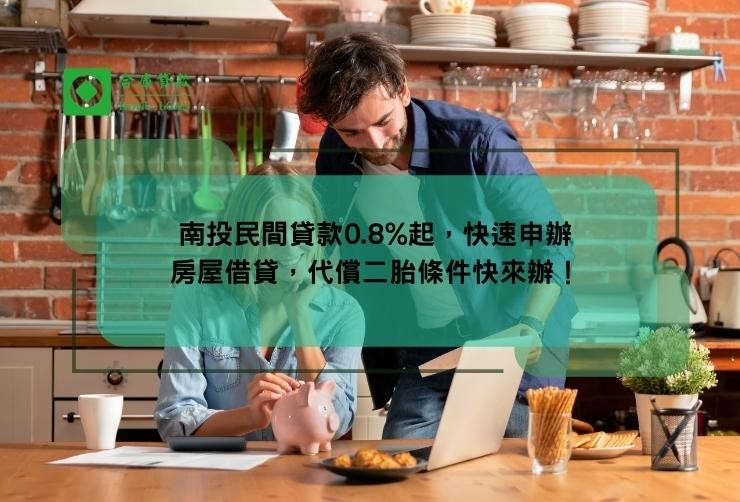 南投民間貸款0.8%起,快速申辦房屋借貸,代償二胎條件快來辦!